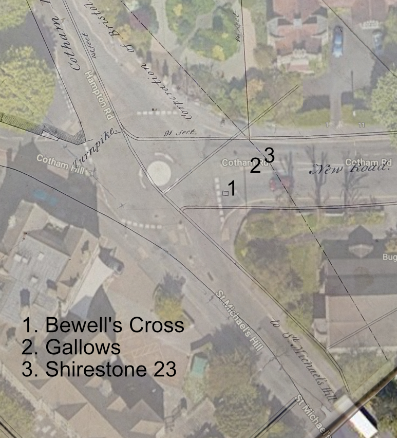 There are published references to Bewell’s Cross as late as the eighteenth century. In 1789 William Barrett noted that Bewell’s Cross was ‘where the criminals now usually pray before their execution at St. Michael’s-hill gallows’.6 Despite this, the exact location of the Cross has long been forgotten, as has its precise position relative to the gallows. In 2020, the Historic Towns Trust for Bristol placed the Cross at the start of what is now Hampton Road, about twenty metres away from the gallows.7