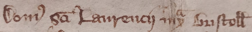 The Archives does hold, however, a document that is important for the history of St Lawrence’s (BA 26166/270). It is dated 1 October 1357 and it certifies that the Master of the Hospital, there described as the house (domus), Henry of Fairford, had received from Simon Halleway the arrears of rent owed on certain property. Henceforward neither he nor his successors at St Lawrence’s would make any further claim. The property was in Worthshipstret, a street later known as the Shambles, in the area between St Peter’s Church and Bristol Bridge where Bridge Street would later be laid out. We should not assume that the hospital owned it, however. It was not uncommon for people to devote a proportion of the rent from their property to religious institutions. We do not know the extent of the debt owed to the hospital, but we might speculate that it had accumulated in the difficult years after the Black Death had attacked England in 1348 and reduced the population significantly. Simon Halleway, who discharged it, was a rich merchant from a well-known Bristol family and he would have been keen to buy out any claims on the property because he was building up his interests in Worthshipstrete in the 1350s.