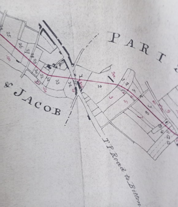 I started with the maps that had to be deposited with the Clerk to the Quarter Sessions when a new railway was projected. There is a map of Lawrence Hill (pictured right) that shows the area in the mid-1820s when a railway was about to be built from Coalpit Heath to the Floating Harbour. It shows a broadly rural landscape of fields and closes, mostly occupied by nursery gardens and pasture.2 Yet the name of Lawrence was still firmly associated with the area. I found a conveyance of 1784, for example, recording a sale of land that lay in Lawrence Leaze [BA 26764/2] to the north of the London road (described on the map as the turnpike road to Bitton), while another transaction of 1820 [BA 4965/24/h] mentions Lawrence Bridge. The bridge crossed the now culverted Wain Brook in the vicinity of the modern Ducie Road, an important clue to the site of St Lawrence’s because the watercourse would have provided bathing water that was one of the few medieval treatments for leprosy.