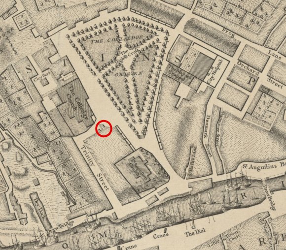 How Smith knew this to be Ruscombe’s house is far from clear. I can find no evidence of street numbering in Bristol before the publication of Sketchley’s Directory in 1775, and contemporary newspaper reports simply describe the house as being on College Green. But Smith was certain of his facts and we can perhaps assume the location was still etched firmly into the collective memory of nineteenth century Bristolians almost a century after the murders. He claimed, in fact, to have lived in a house on the site himself – probably the current No.1 Trinity Street (No.7 College Green in Smith’s day) – between 1803 and 1805. ‘And I must say’, he wrote, ‘that neither the ghosts of the murderer or murdered ever gave me the least trouble whatsoever’.14